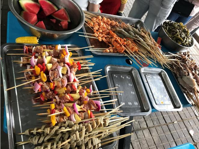 剛開始的燒烤并不是很順利——烤架不給力,烤肉的火候掌握不好,不知何時(shí)放佐料,但在小伙伴們的不斷嘗試中,我們終于把烤串烤的越來越美味,越來越有水平,趕緊來看看我們的勞動果實(shí)吧~有沒有垂涎欲滴呢?