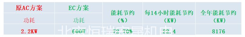 對(duì)空氣處理系統(tǒng)置換一臺(tái)風(fēng)機(jī)測(cè)試,每小時(shí)節(jié)能1.6KW,按使館每天運(yùn)行14小時(shí),商用電費(fèi)1.4元/KW.h計(jì)算,僅這臺(tái)風(fēng)機(jī)每年大約可以節(jié)省11446.4元,后期使館57套AHU系統(tǒng)將全部采用恒瑞宏晟提供的改造方案,將會(huì)每年為用戶節(jié)約近百萬(wàn)的用電成本。