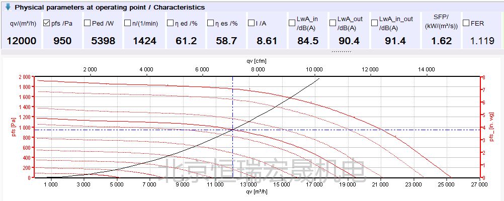 甄選Ebmpapst RadiPac離心風(fēng)機K3G630系列。功率在6.76KW,低功耗使其更加節(jié)能;風(fēng)機直徑為630mm,結(jié)構(gòu)緊湊的風(fēng)機在AHU系統(tǒng)占用的空間更小;在靜壓950Pa的情況下,最大空氣流量可達16120 m³/h,大風(fēng)量使效率更高、散熱能力更強;風(fēng)機葉片通過空氣動力學(xué)的設(shè)計,在AHU系統(tǒng)中運行更為安靜。
