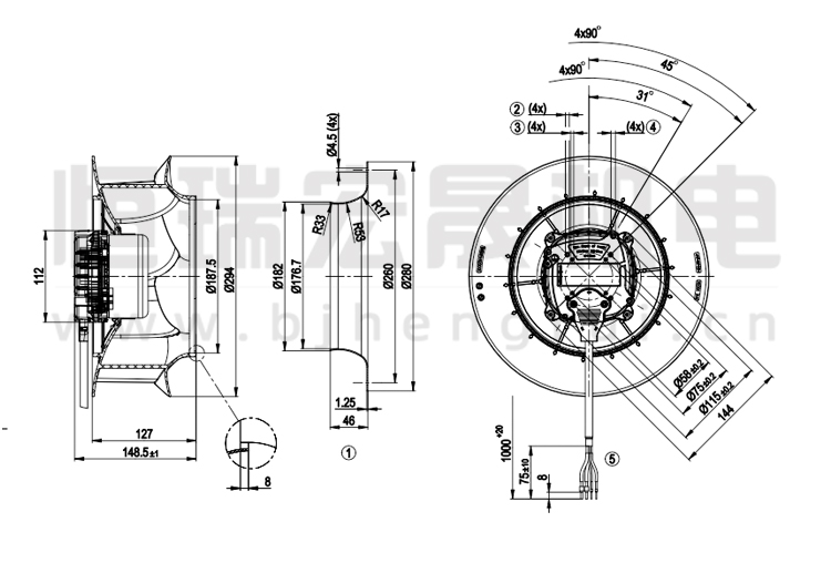 德國(guó)ebmpapst R3G280-RU65-82離心風(fēng)機(jī)結(jié)構(gòu)圖