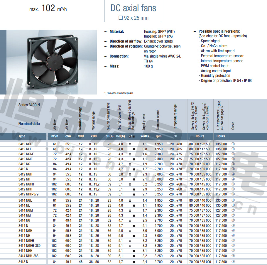 緊湊軸流風(fēng)機(jī)□92×25 mm max.102 m3/h 3412NGLE 3412NLE 3412NGME 3412NME 3412NG 3412N 3412NGH 3412NH 3412NGHH 3412NHH 3412NHH-379 3414NGL 3414NL 3414NGM 3414NM 3414NG 3414N 3414NGH 3414NH 3414NGHH 3414NGHH-389 3414NHH 3414NHH-389 3418N