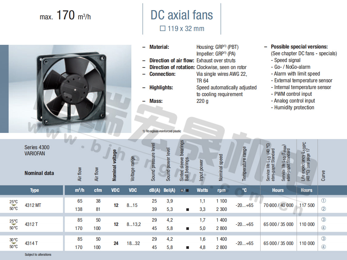 4312-179風量:204m³/h 電壓:12v 噪音:51Db 功率:9.4W 轉(zhuǎn)速:3400r/min