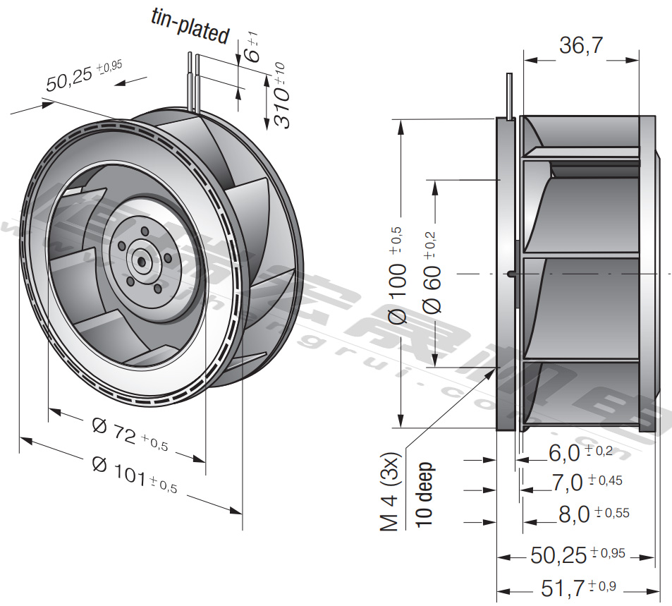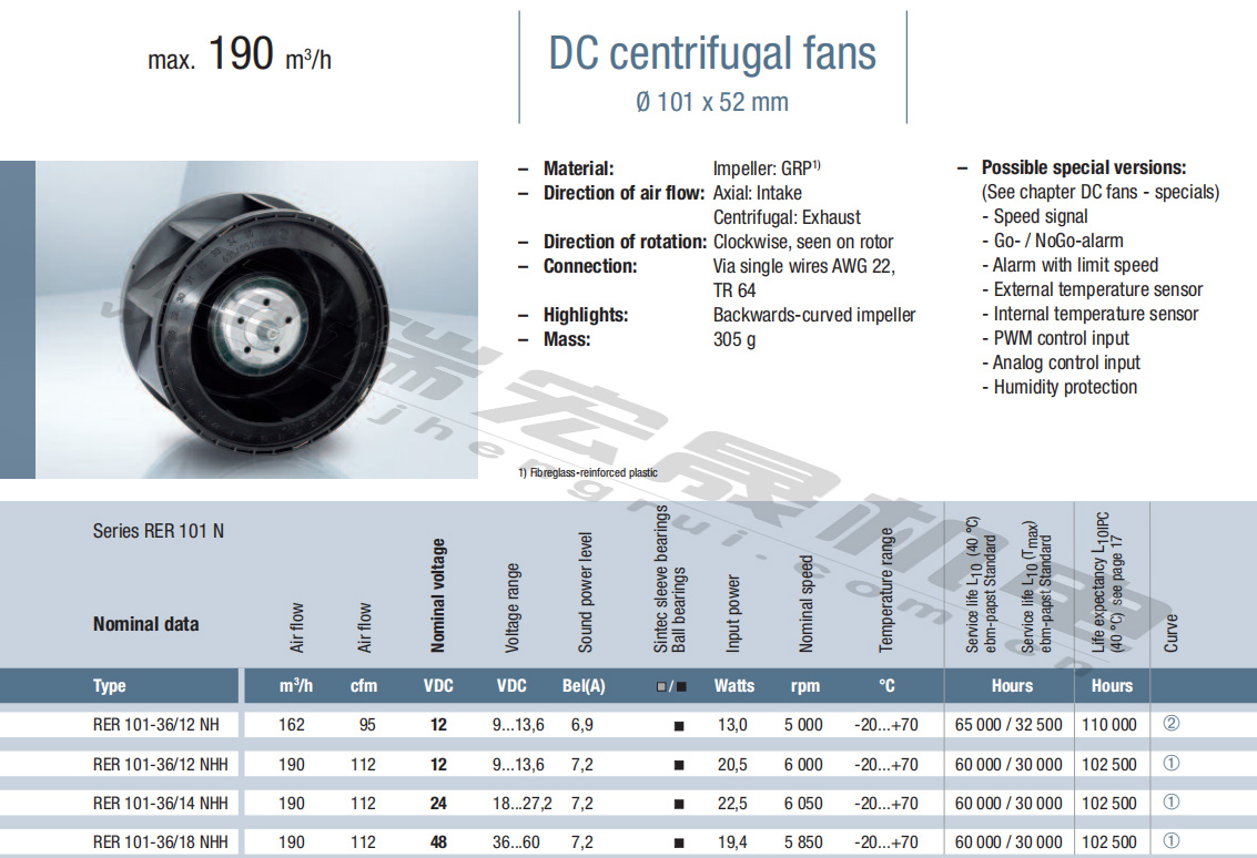 緊湊型風(fēng)機(jī)?101×52 mm max.190 m3/h RER101-36/12NH RER101-36/12NHH RER101-36/14NHH RER101-36/18NHH