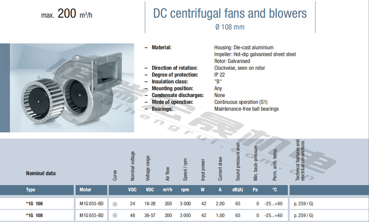 G1G108-AB17-02風量:200m³/h 電壓:24v 電流: 2A 功率:42W 轉(zhuǎn)速:3000r/min