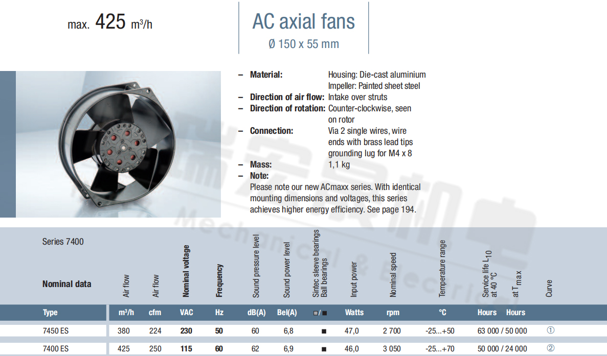 7450ES風量:380m³/h 電壓:230v 電流:6.8A 功率:47W 轉速:2700r/min