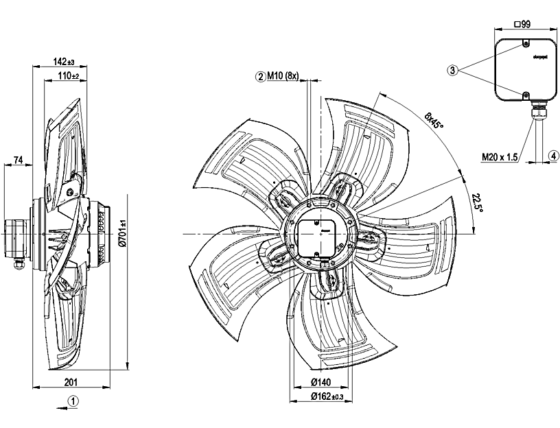 A2D200-AI18-01 風(fēng)機(jī)為軸流風(fēng)機(jī),軸流風(fēng)機(jī)的突出特點(diǎn)是安裝深度淺、噪音低、效率高,特別適合通過熱交換器輸送空氣。此外,結(jié)合GreenTech EC EC技術(shù),還提供了一種在各種應(yīng)用中都能節(jié)能的智能技術(shù)。產(chǎn)品提供了更高的效率,緊湊的設(shè)計,更安靜的運(yùn)行以及更長的使用壽命。