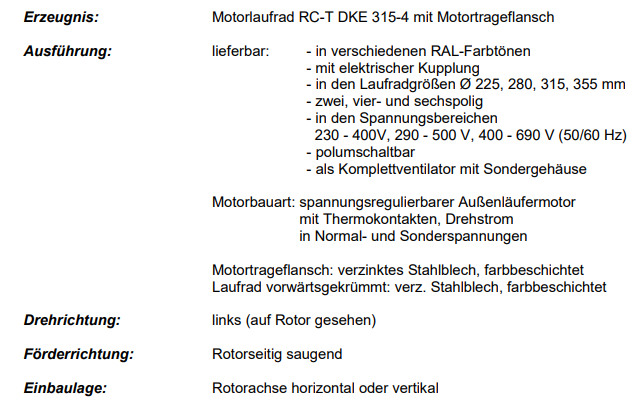 電機(jī)葉輪RC-T DKE 315-4 / 6帶電機(jī)安裝法蘭