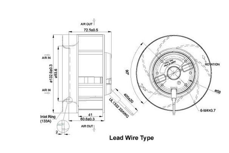 離心扇氣流入風(fēng)口與出風(fēng)口成90度的結(jié)構(gòu)設(shè)計, 適合需要特殊應(yīng)用的工業(yè)化用戶