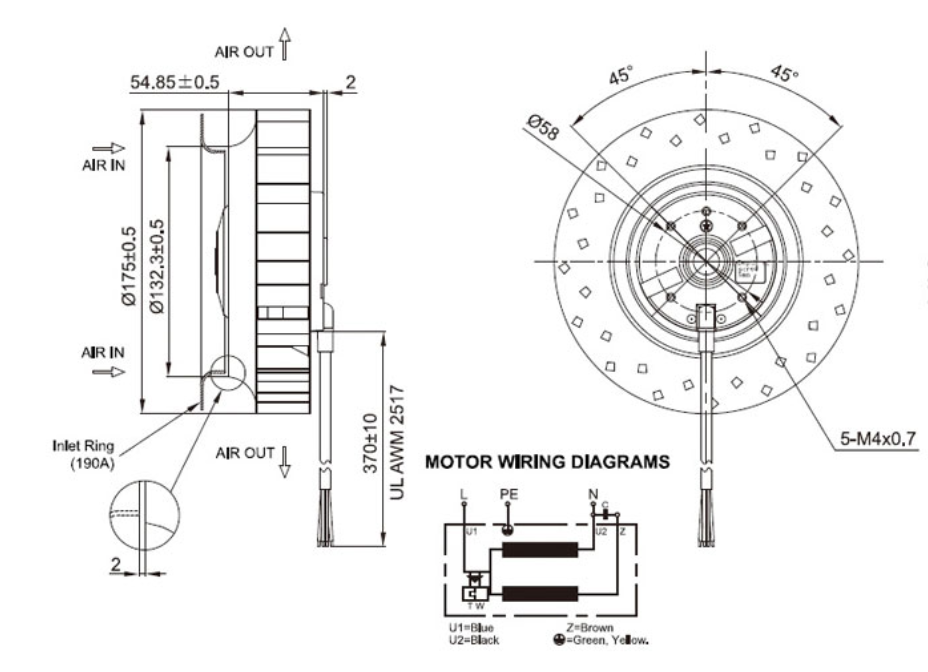 離心扇氣流入風(fēng)口與出風(fēng)口成90度的結(jié)構(gòu)設(shè)計(jì), 適合需要特殊應(yīng)用的工業(yè)化用戶
