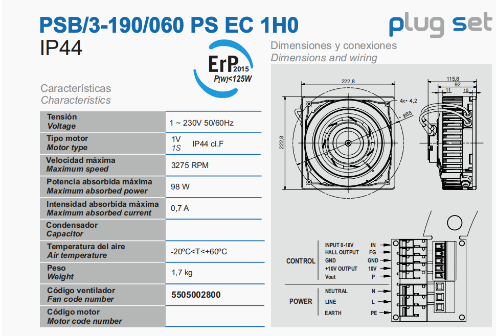 產(chǎn)品型號:PSB/3-190/060 PS EC 1H0 5505002800