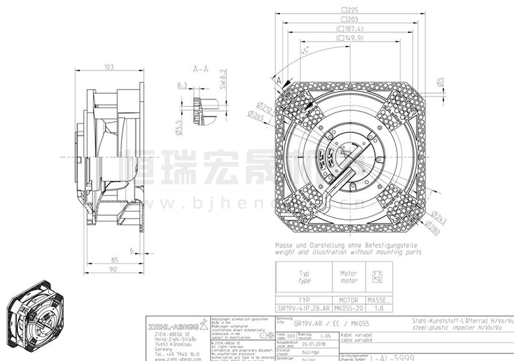 施樂百ziehl-abegg 離心風機 GR19V-4IP.Z8.AR