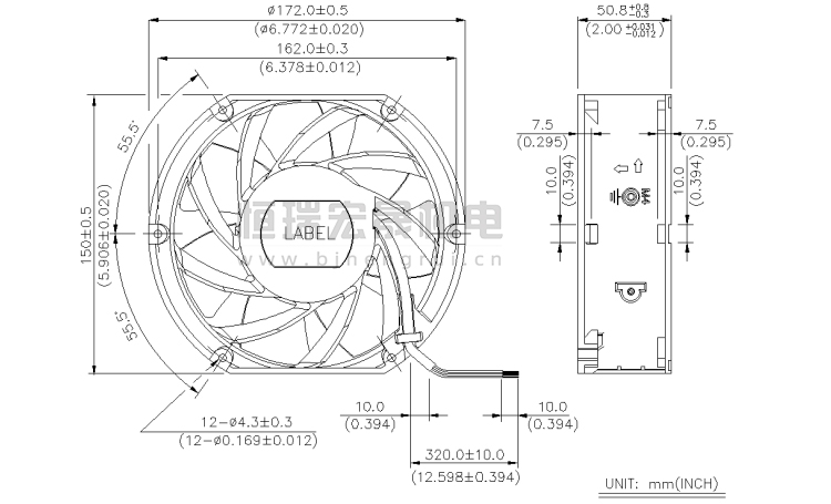 172*150*50.8mm 臺(tái)達(dá)Delta風(fēng)機(jī)結(jié)構(gòu)圖
